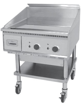 - Special Order Options - 4" legs, stand, stand with shelf and casters, cutting board (stainless or richlite), plate shelf, thermostat knob guard, belly bar, streaked surface, custom griddle styles and configurations, high input elements (30" only) and security package.