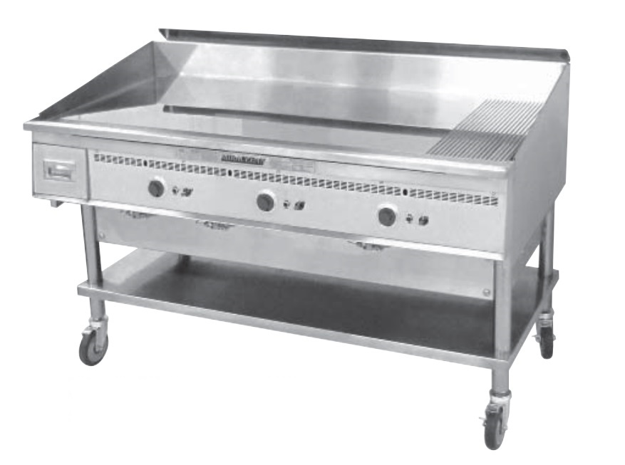 - Special Order Options - 4" legs, stand, stand with shelf and casters, cutting board (stainless or richlite), plate shelf, thermostat knob guard, extra thermostats, belly bar, streaked surface, custom griddle styles and configurations, and security package.