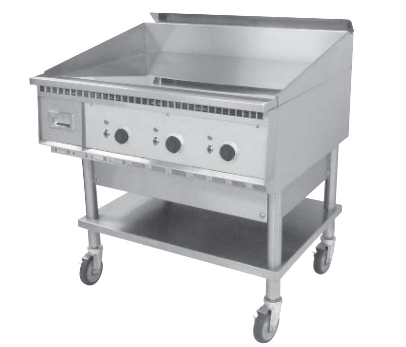 - Special Order Options - 4" legs, stand, stand with shelf and casters, cutting board (stainless or richlite), plate shelf, thermostat knob guard, belly bar, streaked surface, custom griddle styles and configurations, and security package.