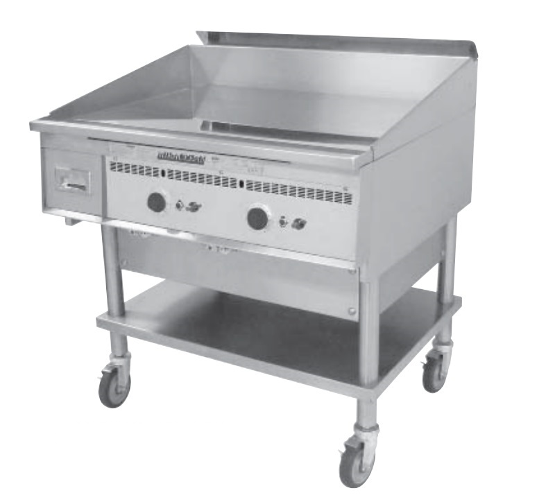 - Special Order Options - 4" legs, stand, stand with shelf and casters, cutting board (stainless or richlite), plate shelf, thermostat knob guard, belly bar, streaked surface, custom griddle styles and configurations, and security package.