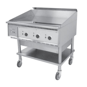 - Special Order Options - 4" legs, stand, stand with shelf and casters, cutting board (stainless or richlite), plate shelf, thermostat knob guard, belly bar, streaked surface, custom griddle styles and configurations, and security package.