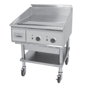 - Special Order Options - 4" legs, stand, stand with shelf and casters, cutting board (stainless or richlite), plate shelf, thermostat knob guard, belly bar, streaked surface, custom griddle styles and configurations, high input elements (30" only) and security package.