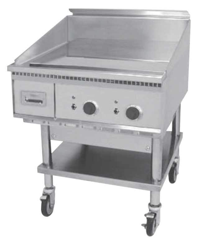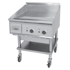 - Special Order Options - 4" legs, stand, stand with shelf and casters, cutting board (stainless or richlite), plate shelf, thermostat knob guard, belly bar, streaked surface, custom griddle styles and configurations, high input elements (30" only) and security package.