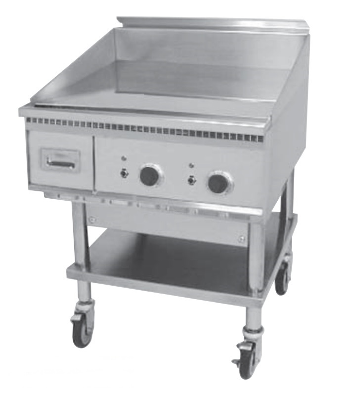 - Special Order Options - 4" legs, stand, stand with shelf and casters, cutting board (stainless or richlite), plate shelf, thermostat knob guard, belly bar, streaked surface, custom griddle styles and configurations, high input elements (30" only) and security package.