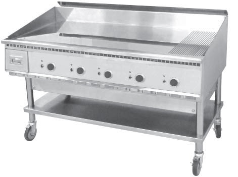 - Special Order Options - 4" legs, stand, stand with shelf and casters, cutting board (stainless or richlite), plate shelf, thermostat knob guard, belly bar, streaked surface, custom griddle styles and configurations, and security package.