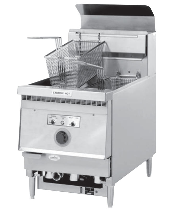 SPECIFICATIONS Fryer Vessel - 18 gauge stainless steel, with a shortening capacity of 30 pounds. Equipped with three stainless steel electric elements, spaced above the bottom of the vessel so that the bottom is unheated and the food particles collecting in the bottom zone are unheated and therefore do not carbonize. The vessel is polished to inhibit carbon buildup and facilitate easy clean-up. The bottom of the vessel slopes toward the front, and is equipped with a 1" Tefl on core 1/4 turn drain valve, so the shortening can be drained into a receiving vessel placed in front of the fryer.