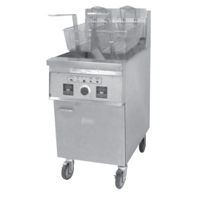 The 20 TS Fryer is ideal for multi-product use. The 20 TS allows you to cook up to 140 lbs. of frozen french fries or 200 lbs. of chicken per hour with an input of 28.6 kW rated at 240 volts.