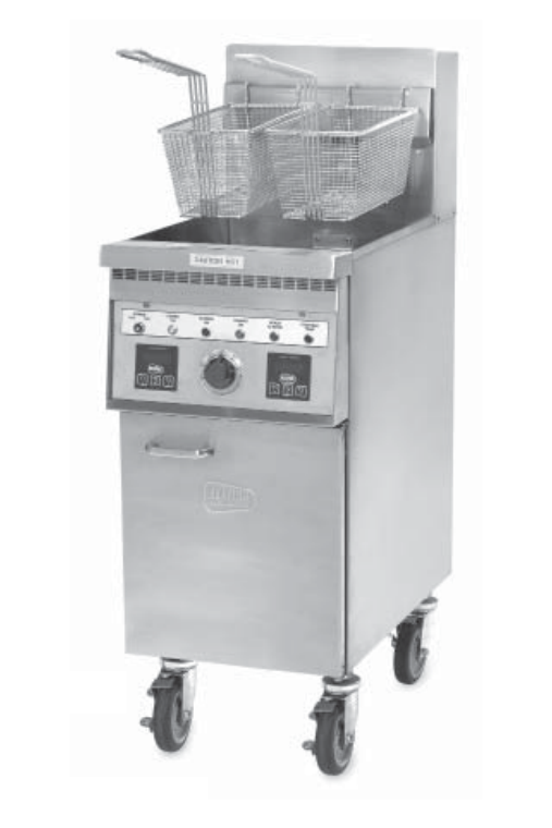 The 18 Incredible Frying Machine®high efficiency, high production fryer lets you cook 140 lbs. of frozen fries or 150 lbs. of chicken per hour with an input of only 118,000 BTU. The Instant-On™ system anticipates large loads to handle peak cooking requirements. Indicating lights tell the status of the fryer and two digital timers with repeat memories ensures precise cooking times.