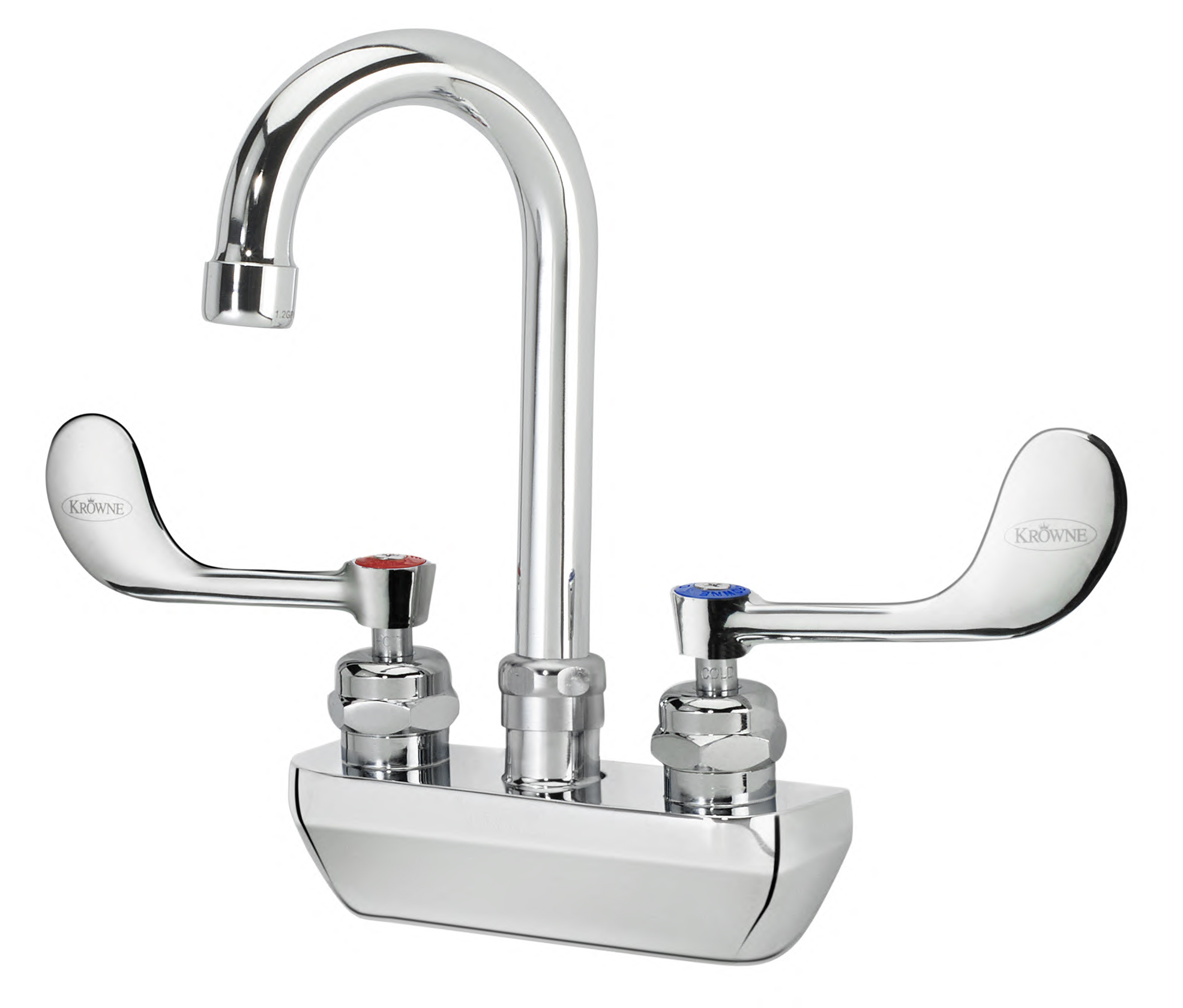 Krowne 14-400L-W-E2 Royal Series 4" Center Wall Mount Faucet with 3.5" Wide Gooseneck Spout & Vandal Resistant Wrist Blades Handles