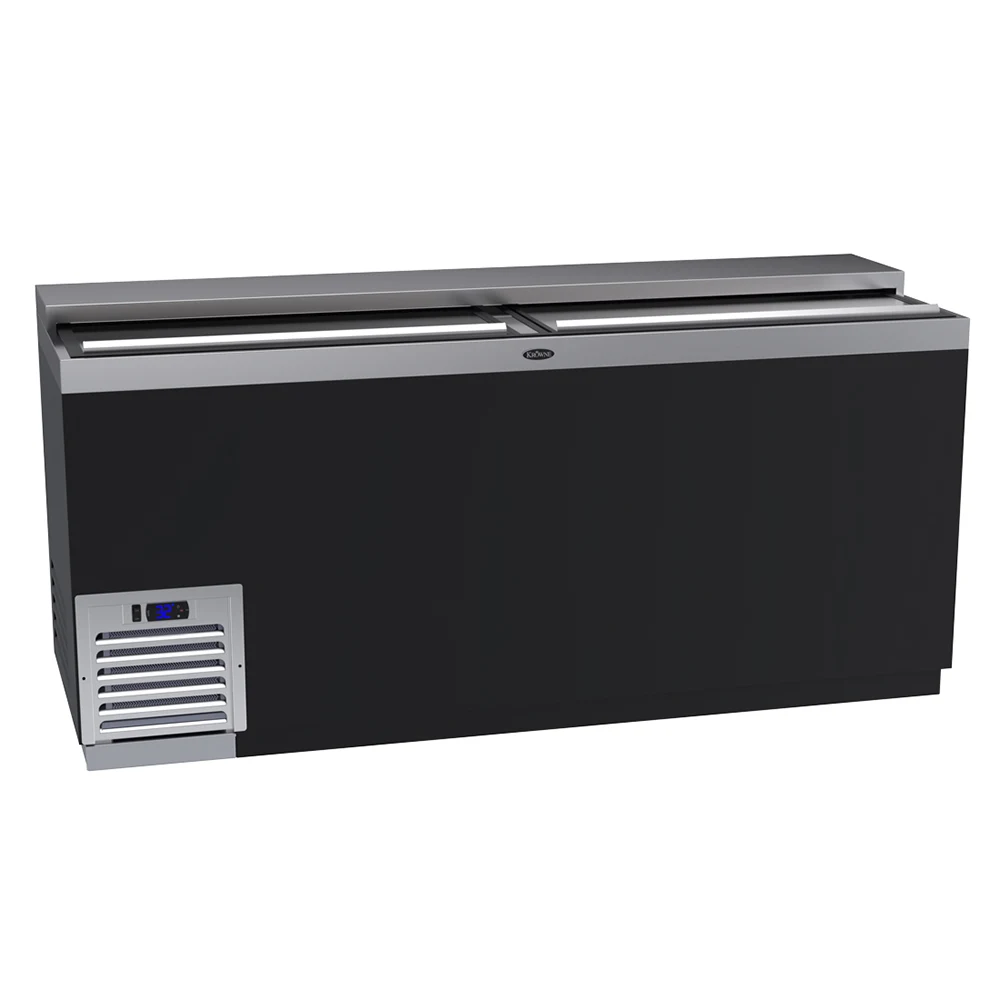The Krowne BC72-BG bottle cooler can hold as many as 25.5 cases of 12-ounce bottles, supporting drinks from hard cider to beer. Four adjustable divider racks separate the drinks, so bartenders can quickly find and grab the ones they need. Two sliding doors sit over the cooler area, and their bar handles aid staff in opening the door. The unit's interior is made from stainless steel, ensuring spills can be quickly wiped out, and the unit's exterior is covered in durable black vinyl.