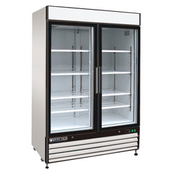 - Featuring a bottom mounted compressor, the glass door merchandisers effectively keep product at exactly the right temperature while utilizing energy efficiency.