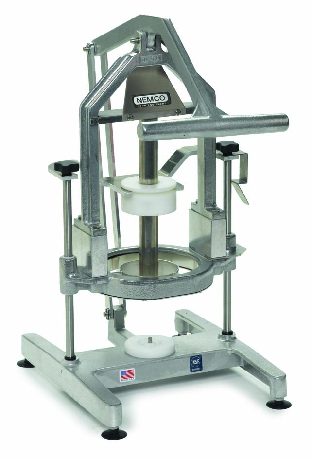 Take all the labor out of prepping a pineapple. NEMCO's latest countertop innovation completely removes the core and peel with one simple pull of its easy-action, top-down lever. Saves time, effort and food waste. A locking mechanism keeps the handle/blade in the up position while loading a pineapple. Tough aluminum and stainless steel construction and easy disassembly for cleaning extend the life of the unit for great return on investment.