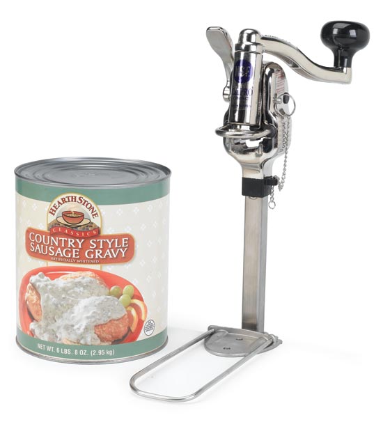 NEMCO's unique mechanical design thinks outside the can! Instead of cutting down vertically into the lid, the CanPRO® Compact cuts horizontally into the rim for improved food safety, as well as operator safety. Cutting from the outside, the blade assembly crimps as it cuts, eliminating the sharp edge that can slice a hand or damage a spatula. Plus, it leaves no metal slivers that can fall into the food contents. Running the circumference of a #10-sized can just takes a few quick and easy turns of the crank. It's adjustable to all can sizes and features a permanent mount with an optional temporary clamp, allowing you to move the opener around the kitchen. Security model option offers a locking capability.