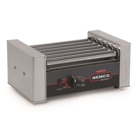 Let profits roll! Everybody loves a NEMCO Roller Grill hot dog. Plus, these surprisingly versatile machines are also great for such ethnic favorites as egg rolls and tamales. The 360° roller rotation prevents residue buildup, while individual roller heating elements ensure heating consistency. Removable drip pan makes for easy cleaning. Electric power requires no ventilation system. Seven heat settings offer convenient temperature control. For optimum roller performance capability, look for GripsIt models that include SilverStone with grip-and abrasion-resistant additive.