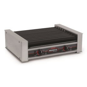 Let profits roll! Everybody loves a NEMCO Roller Grill hot dog. Plus, these surprisingly versatile machines are also great for such ethnic favorites as egg rolls and tamales. The 360° roller rotation prevents residue buildup, while individual roller heating elements ensure heating consistency. Removable drip pan makes for easy cleaning. Electric power requires no ventilation system. Seven heat settings offer convenient temperature control. For optimum roller performance capability, look for GripsIt models that include SilverStone with grip-and abrasion-resistant additive.