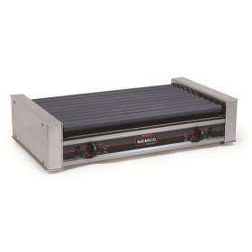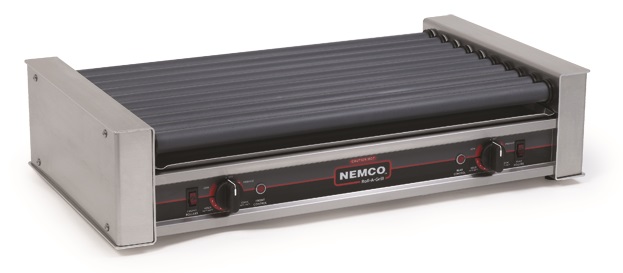 Let profits roll! Everybody loves a NEMCO Roller Grill hot dog. Plus, these surprisingly versatile machines are also great for such ethnic favorites as egg rolls and tamales. The 360° roller rotation prevents residue buildup, while individual roller heating elements ensure heating consistency. Removable drip pan makes for easy cleaning. Electric power requires no ventilation system. Seven heat settings offer convenient temperature control. For optimum roller performance capability, look for GripsIt models that include SilverStone with grip-and abrasion-resistant additive.
