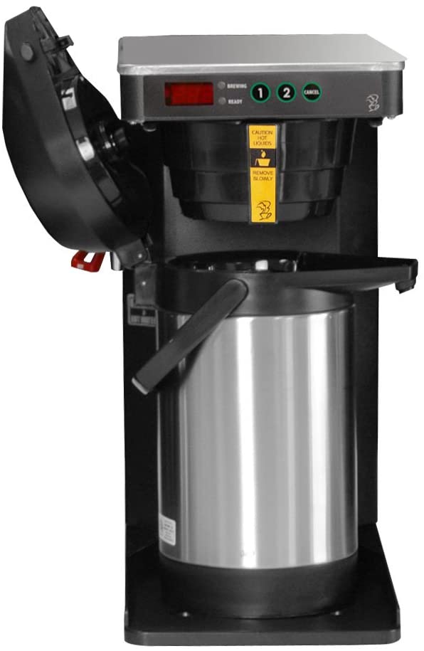 - This coffee maker brews into airpots, carafes or gravity dispensers which are sold separately.