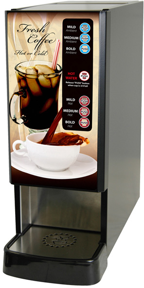 Our soft touch membrane panel can be easily programmed to dispense your products in a variety of ways: Press and hold or Portion Control, Multiple product strengths (Mild, Regular or Bold) and temperature (hot or ambient). All of the functions are built into the LCD-1 dispenser. The only thing required is to choose the options that are right for you.
