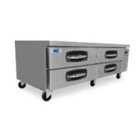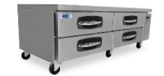 - Heavy-duty stainless steel drawers supported on stainless steel telescoping drawer slides with stainless steel roller bearing wheels.