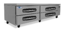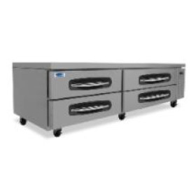 - Heavy-duty stainless steel drawers supported on stainless steel telescoping drawer slides with stainless steel roller bearing wheels.