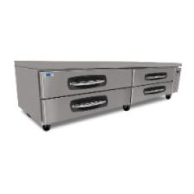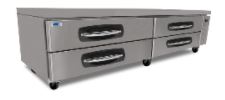 - Heavy-duty stainless steel drawers supported on stainless steel telescoping drawer slides with stainless steel roller bearing wheels.