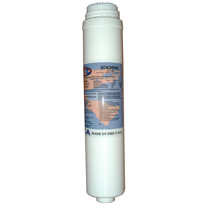 The Omnipure QCK3000 water filter is a 5 micron inline filter that protects against Taste, Odor, Chlorine and lead with a Scale Inhibitor & KDF.