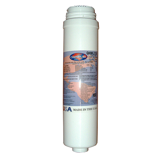 The Omnipure QHMLCS water filter is a 1 micron inline carbon block filter that protects against Taste, Odor, Chlorine, Cyst, lead with a Scale Inhibitor.