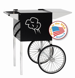 Carts provide easier access, better merchandising and great mobility. The sturdy. all steel construction has a chip resistant coating. Also features convenient built-in storage space and breaks down easily for storage and transportation. Medium carts fit the 4 oz popcorn machines.