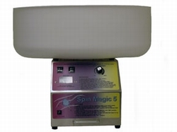 Our easy-to-use SPIN MAGIC 5 machine has a complete new head design that produces cotton candy continueously and smoothly. New High-Performance Head will not clog like ordinary ribbon style heating elements. All metal design gives your superior durability over those using plastic parts. Heavy-Duty Motor (1/12 horsepower) operates at 3400 RPM for fast cotton candy delivery. The motor is completely shielded from sugar to extend its life and allow easy clean-up. Professional Controls gives the operator the flexibility to make perfect cotton candy under any conditions. Stainless Steel Cabinet delivers commercial quality and durability. Voltage Meter indicates the optimum settings for producing the best cotton candy and maximizing sugar to floss yield.