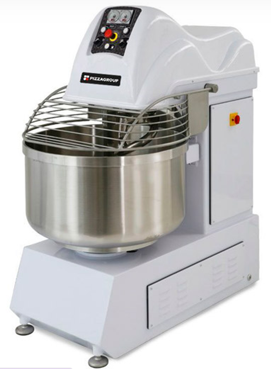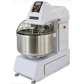Automatic spiral mixer, with fixed bowl, is designed for the US market for mixing doughs made with a high gluten content or with a low percentage of liquid. Every part of the machine is reinforced, both in terms of its structure and its parts. It features 2 motors, a special drive to reduce stress and a large spiral, with possibility of installing larger motors in some models.