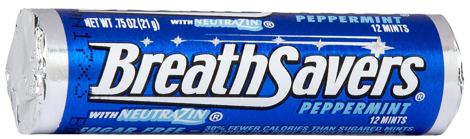 Breath Savers Peppermint Rolls, .75 oz Each, 15 Boxes of 24 Rolls, 360 Total