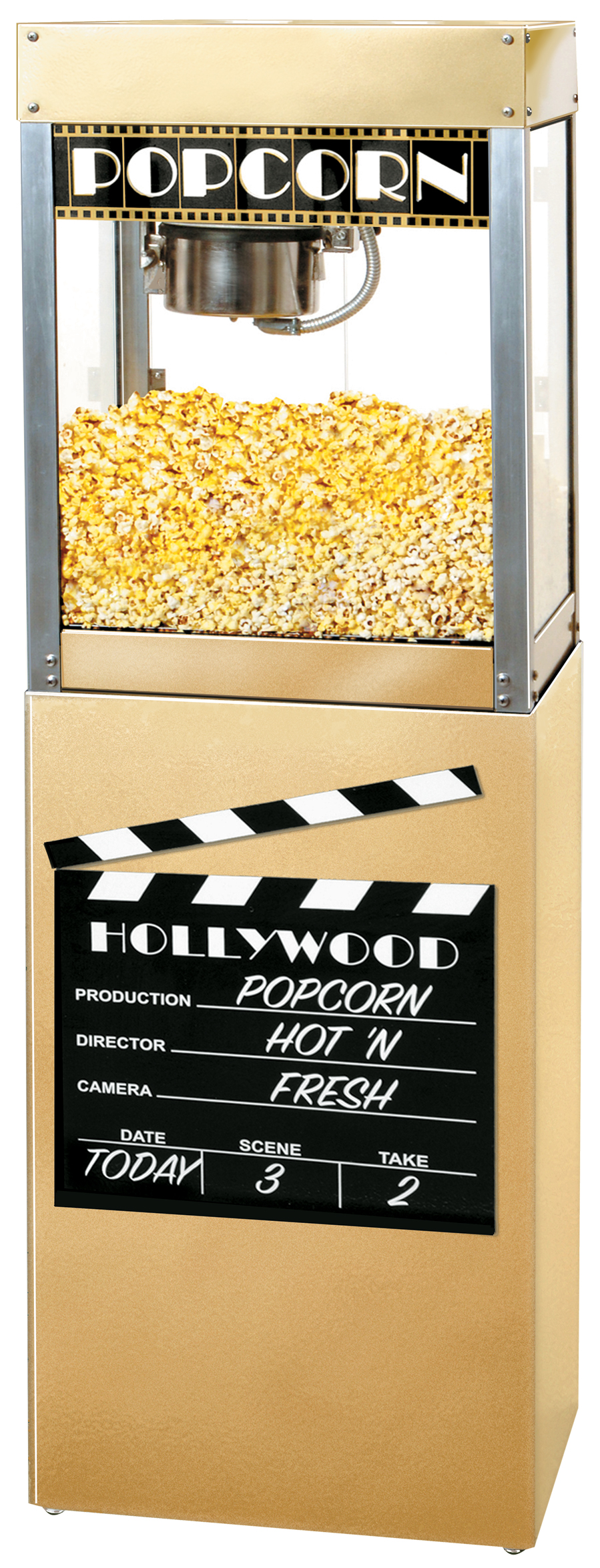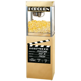 Bring the movie theater experience to your home or business with this commercial grade popper. It is available in either a 4 ounce or 6 ounce kettle to meet your needs. The optional pedestal base has a two shelf storage compartment for all of your popcorn supplies.