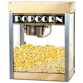 Bring the movie theater experience to your home or business with this commercial grade popper. It is available in either a 4 ounce or 6 ounce kettle to meet your needs. The optional pedestal base has a two shelf storage compartment for all of your popcorn supplies. 6 ounce poppers will make 127 quarts per hour.