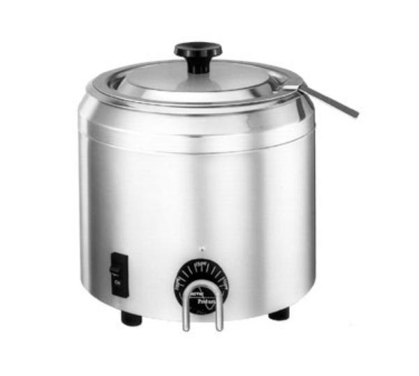 This small volume, water bath warmer is thermostatically controlled to hold products at serving temperature without burning or scorching. It's constructed of stainless steel and includes an exclusive stainless steel bowl. An adjustable, precalibrated thermostat senses the food temperature and turns the 250 watt heating element on or off as needed.