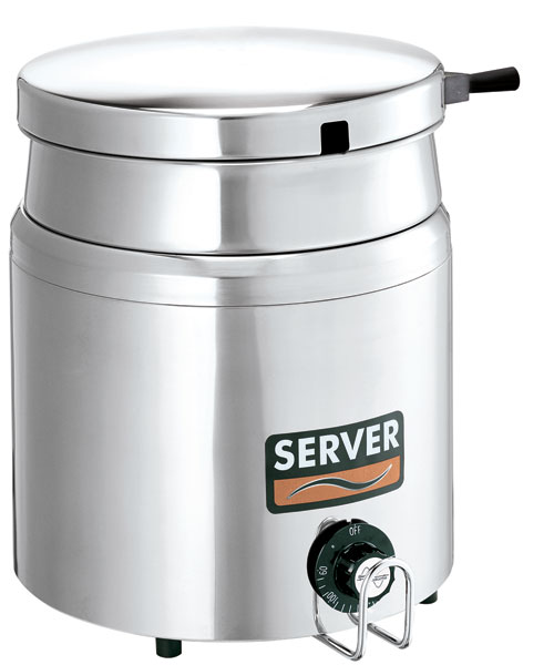 Server warmers feature a thermostat that senses food temperature and turns the 1500-watt heating element on or off as needed to eliminate burning or scorching.