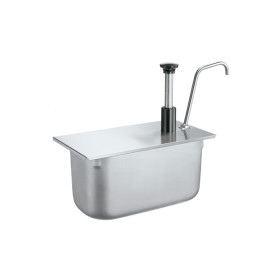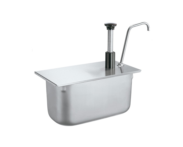 This stainless steel condiment pump is ideal for dispensing just about any condiment or dressing, including those with larger chunks such as tartar sauce and Thousand Island dressing, directly from a steam table pan.