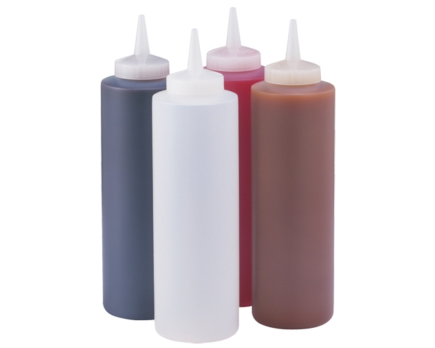 Use alone or in a Server Signature Touch topping warmer 86010. The #86809 plastic squeeze bottle is constructed of high-density plastic to withstand heating. Each bottle holds 16 ounces (.57 L) with a 1¼" (3.2 cm) opening for filling. Toppings not included.