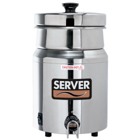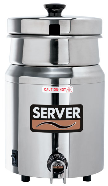 Server warmers feature a thermostat that senses food temperature and turns the 500-watt heating element on or off as needed to eliminate burning or scorching.