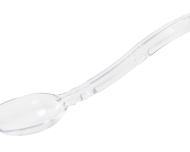 Use this serving spoon with a 1/9-size jar and portioning strike bar to quickly solve overportioning issues. The clear Polycarbonate spoon is 4" (10.2 cm) and holds ⅓ oz (14 mL) by volume. For Use with 2PRS