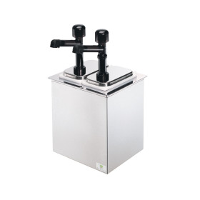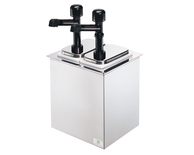 The SB-2DI drops into a countertop to keep your condiment station clean and convenient. It includes two polycarbonate Solution™ condiment pumps (81910) and two deep plastic fountain jars (82557). The stainless steel bar has a brushed finish to reduce the visibility of fingerprints. Insulated Serving Bars may be cooled with one Eutectic Ice Pack per jar, HOLDCOLD™ Jars or ice.