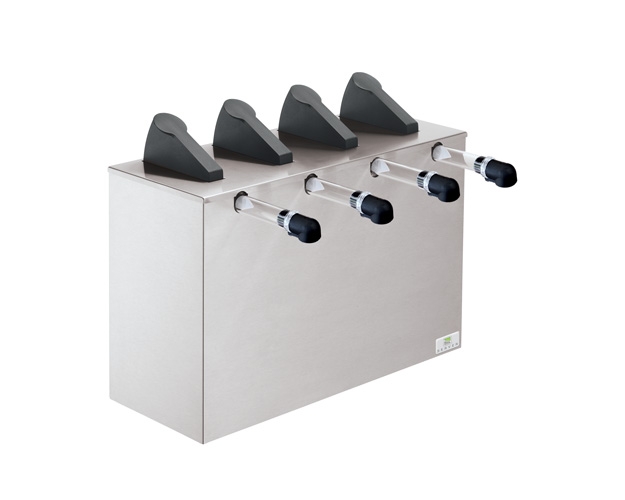 The Server Express™ Quadruple System dispenses condiments from 1⅓-gallon (or 6-L) Cryovac® pouches with fitment exclusively. Its finest feature is a surgical-quality plastic pump that is quick to break down, dishwasher safe and achieves up to 98% evacuation. The Express™ pump is featured in each Express™ System base.
