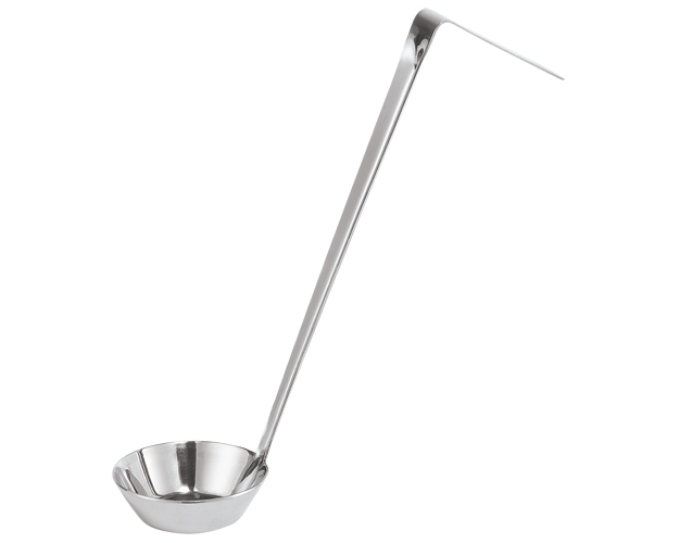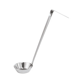 Server's short (7", 17.8 cm) ladle is constructed of stainless steel and has a capacity of 1 ounce (30 mL). Fits a full-size fountain jar 7" deep (82558). Not compatible with 2/3-width fountain jars.
