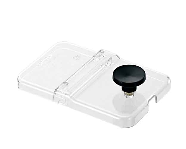 Lid for 1/9-size jar, hinged, clear, plastic.
