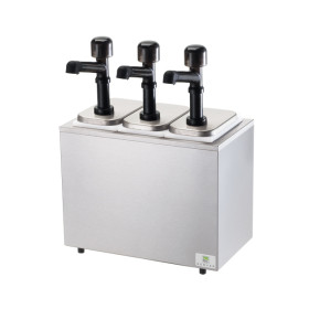 This non-insulated rail combo includes (3) Solution pumps and 81910 deep plastic fountain jars 82557. The stainless steel base features a brushed finish that reduces the visibility of fingerprints.