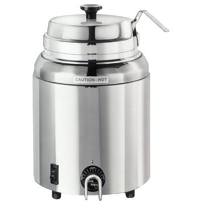The FS is a water bath warmer that is thermostatically controlled to hold products at serving temperature without burning or scorching. It's constructed of stainless steel and ladles directly from a #10 can or stainless steel jar 94009 (not included). An adjustable, precalibrated thermostat senses the food temperature and turns the heating element on or off as needed.