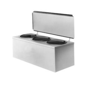 The Double Cone Dip Warmer accepts (3) stainless steel jars 94009 or #10 cans of dip coat. The top with hinged lid is removable with flanges that extend down into the jar to prevent dripping into the warmer. The bottom piece is also removable.