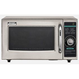This medium-duty commercial microwave has features that make it a good choice for either commercial kitchens or for high-volume convenience stores or large office break rooms. The heavy-duty construction and room to hold one half-pan in either direction make it a good fit for warming or heating food in commercial kitchens. Meanwhile, the ease-of-use provided by a single power level, the dial timer, and a rubber-sealed ceramic interior shelf allow for uncomplicated operations in do-it-yourself applications. No matter the usage, the 1000 watts of power output allow for fast and efficient heating. A rugged grab handle is designed for a life of heavy-duty use. The glass door and an interior light ensure a clear view of food cooking inside.