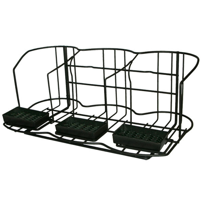 Keep your coffee area clean and organized with an airpot rack from Holiday House. An airpot rack is a great way to insure airpots will be returned to their proper place after use. They also help merchandise your drinks, whether used behind the counter or at a self serve table. Includes drip trays to keep rack and counter clean. This side-by-side rack holds three airpots.