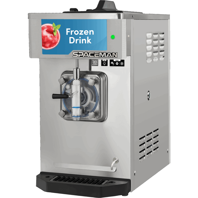 The 6450-C is a 110 Volt, One Flavor Countertop Frozen Beverage Machine, 6450-C is combined with Spaceman’s proprietary V3 precision single piece beater technology which means fast cleaning and the best product consistency available. Patented freezing technology equals quick freeze and recovery times. The efficient cooling also means less energy per serving.