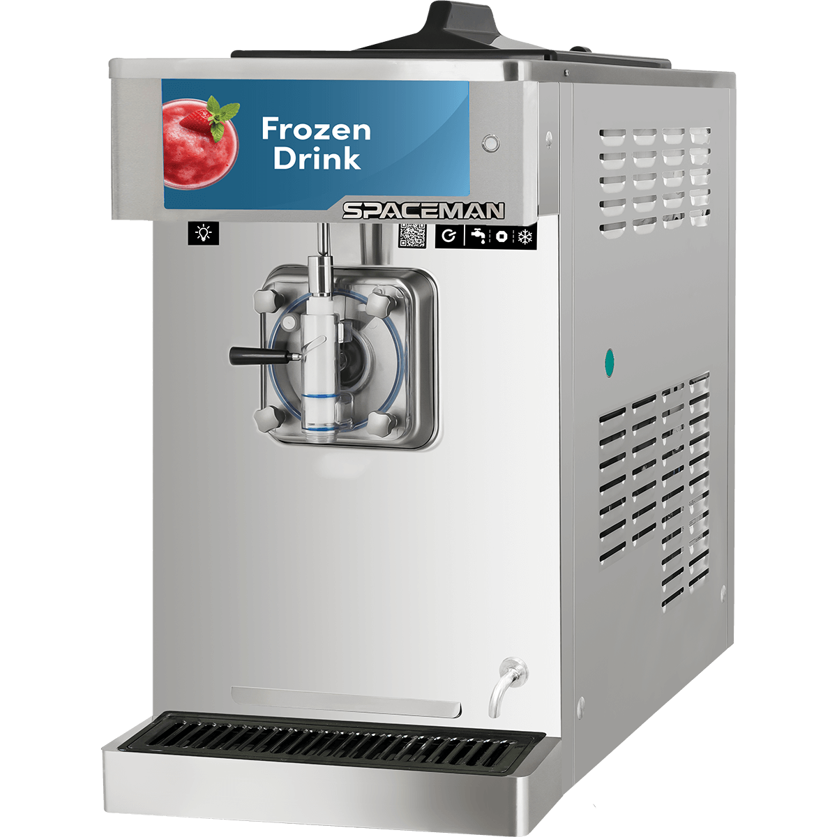 The 6690-C is a high-volume countertop single flavor frozen beverage machine. Ideal for busy operations servings frozen drinks, milkshakes, and cocktails. Patented freezing technology makes for quick freeze and recovery times, is more efficient, and uses less energy per serving then competitors. Pre-cooling in the hopper refrigerates product before entering the freezing cylinder, further improving the freeze down time – it also means this model carries food safety approval for storing product overnight, including dairy. Spaceman’s patented freeze technology combined with the all new V2 beater/blade system means easy cleaning and the best product consistency available. The Spaceman V2 system scrapes the cylinder walls with precision, resulting in smaller ice crystals. The design ensures smooth icy cold product sure to tantalize and please your senses! The new C overhead design allows you to switch products and hardness levels in under 30 seconds. Multi-unit operators can choose a 1-6 setting based on product and control consistency easily across locations. Our low evaporator temperature allows Spaceman frozen beverage machines to freeze alcoholic beverages with ease! High volume operations can reply on the 6690-C to serve milkshakes, smoothies, frozen coffee drinks, margaritas, or other frozen cocktails. Patented freezing technology makes for a fast recovery time in the 7.3qt cylinder, producing 90 quarts per hour, or 360 x 8oz drinks.